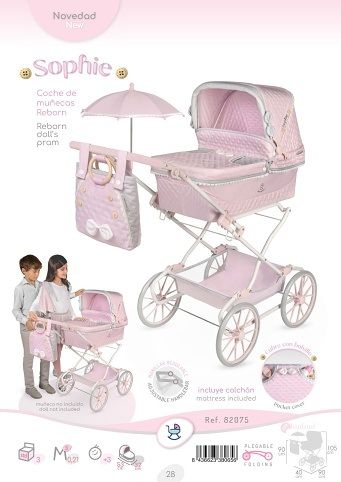 DeCuevas 82075 Skládací kočárek pro panenky REBORN se slunečníkem a doplňky Sophie 2025 - 90 cm patří do stejnojmenné kolekce, která je novinkou roku 2025 a nabízí nejen zmíněné kočárky, ale i jiné doplňky pro malé slečny a jejich panenky. Něžná dívčí kolekce Sophie je nepřehlédnutelná pro každé děvčátko. Světle růžová barva dominuje celé kolekci. Doplněná je o světle šedivé a bílé kraječky a mašličky, které zdobí všechny výrobky této rozmanité kolekce a ještě více podtrhují nádech romantiky.