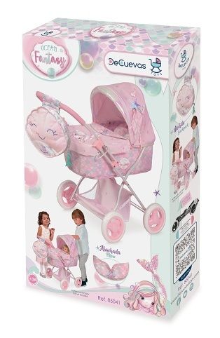 DeCuevas 85041 Skládací kočárek pro panenky s batůžkem a doplňky Ocean Fantasy 2021 - 60 cm, z překrásné světle růžové kolekce s malou mořskou vílou, je díky nízké rukojeti a lehké váze vhodný pro menší slečny.