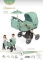 DeCuevas 85073 Skládací kočárek pro panenky se slunečníkem a taškou Capriccio 2025 - 60 cm patří do stejnojmenné kolekce, která je novinkou roku 2025 a nabízí luxusní kočárky jak pro malé slečny a jejich panenky, tak pro chlapce. Tato úžasná kolekce Capriccio není nová jen svou nezaměnitelnou moderní mentolově zelenou barvou, ale také svým zdobným zpracováním. Jedná se o imitaci úpletu rafinovaně kombinovaného s hladkou moderní látkou. Rám a podvozek kočárků tvoří tmavě šedá se zlatými prvky, které jsou vkusně uplatněny v podobě zlatých zipů a výšivky Capriccio na textilní části kočárků a doplňkové tašce.
