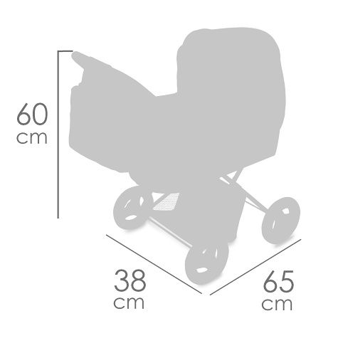 • Rozměry kočárku: 65 × 38 × 60 cm (výška k rukojeti)