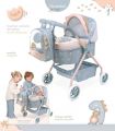 DeCuevas 86080 Můj první kočárek pro panenky s batůžkem COCO 2024 - 56 cm patří do stejnojmenné kolekce, která je novinkou roku 2024 a nabízí nejen kočárky, ale i jiné doplňky nejen pro malé slečny a jejich panenky, ale také chlapce. V hravé kolekci COCO je dominantní obrázek dinosauří maminky se svým roztomilým mláďátkem, které nese na zadečku ještě vaječnou skořápku. Potisk malého dinosauříka na jemně holubičí šedomodré látce je základem celé kolekce, již zdobí prvky v pískové nebo narůžovělé barvě, která se promítá i do většiny nosných konstrukcí.