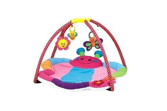 Roztomilá hrací deka Teddies bude skvělou zábavou pro vaše nejmenší. Má tvar motýlka, který se krásně usmívá a na hlavičce má dvě tykadla. Je vyrobena z měkoučkého a zdravotně nezávadného materiálu. Na deku můžete připevnit barevnou hrazdičku, na které jsou zavěšené tři hračky - motýlek, kytička a včelka. Motýlek má šustivá křídla, kytička v sobě ukrývá zrcátko a včelka chrastí. Miminko může na dece ležet a prohlížet si hýbající se hračky. Později si s nimi může hrát. Hračky visí na malých plastových kroužcích, můžete je tedy snadno sundat a obměnit, aby děťátko získalo nové podněty. Visící hračky napomáhají k rozvoji senzorických dovedností a výrazné barvy stimulují zrak.