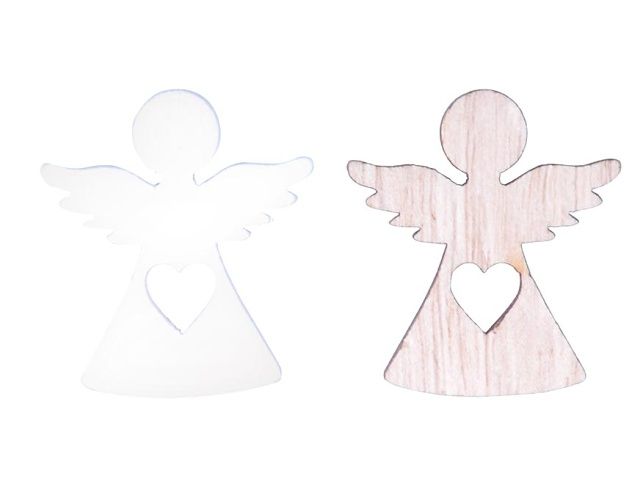 Dřevěná dekorace anděl v bílé a přírodní barvě. Plánujete si udělat pohodové odpoledne a vyzdobit si dům nebo zahradu? Tyto dřevěné dekorace jsou tím vhodným kreativním doplňkem, který ozdobí každý kout Vaší místnosti! OBSAH BALENÍ: - 12 ks andělů (bílá, přírodní) Velikost: 30 mm Baleno v sáčku se závěsem. Uvedená cena je za 1 balení.