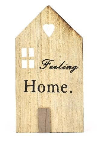 Tato dřevěná dekorace ve tvaru domku s nápisem Feeling Home vám pomůže dotvořit příjemnou atmosféru domova.