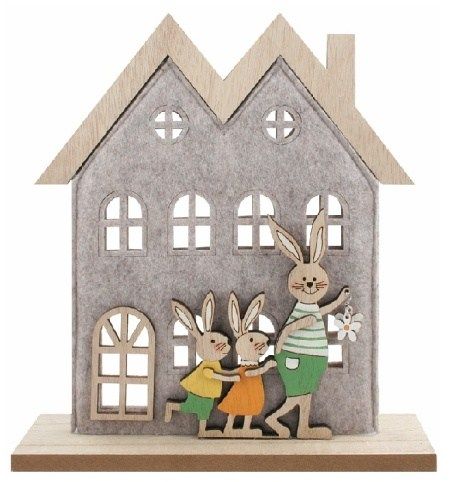 Dekorace Dům z filcu se zaječí rodinkou 21 x 23 x 5 cm na postavení