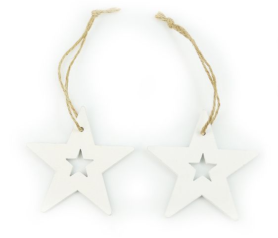 Dřevěné hvězdy k zavěšení- barva bílá- velikost 7,2cm