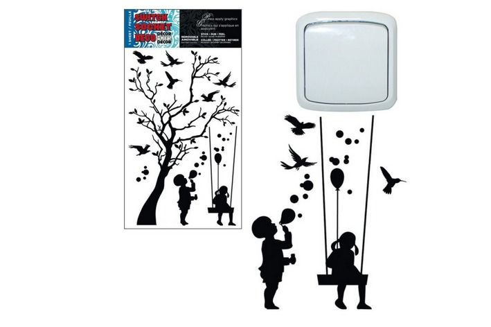 Vybraný motiv vystřihněte včetně podkladového papíru a krycí fólie. Odstraňte podkladový papír a přilepte obrázek na rovný čistý a suchý povrch.