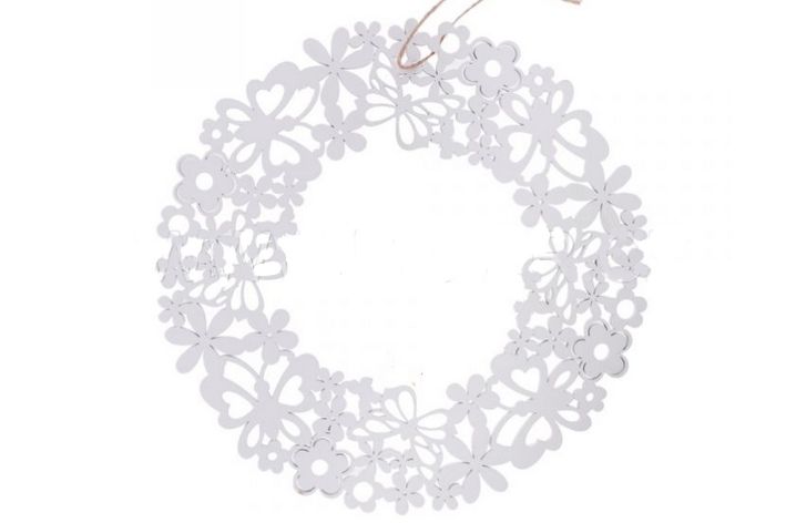 Dekorace k zavěšení dřevěný věnec bílý 30cm