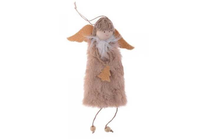 Vánoční dekorace k zavěšení - plyšový, hnědý anděl.