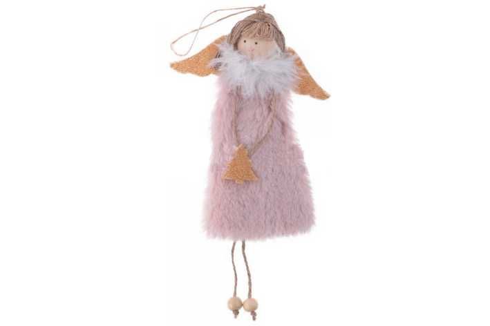 Vánoční dekorace k zavěšení - plyšový, růžový anděl.