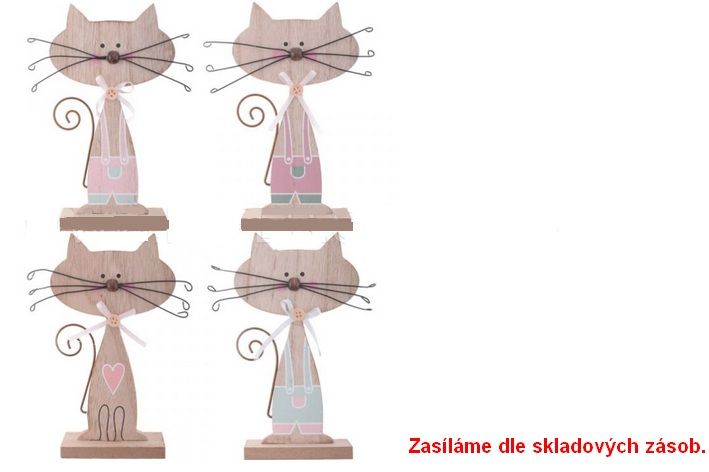 Dekorace Kočka v kalhotách dřevěná 17cm 4 druhy