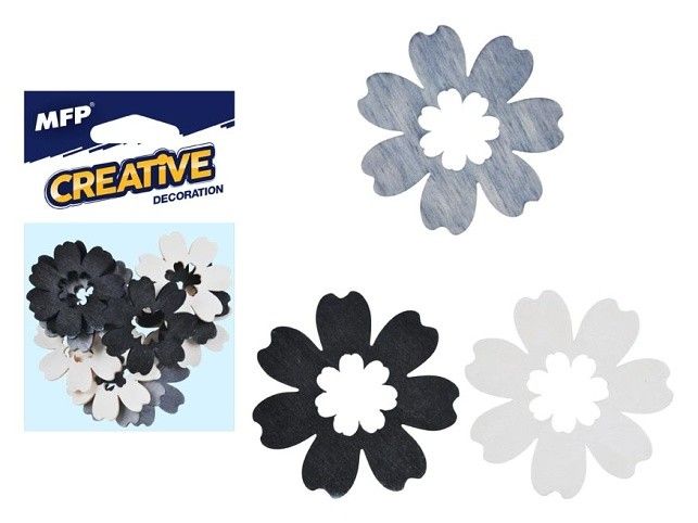 Dřevěná dekorace - květiny - Plánujete si udělat pohodové jarní odpoledne a vyzdobit si dům nebo zahradu? Tyto dřevěné dekorace jsou tím vhodným kreativním doplňkem, které ozdobí každý kout Vaší místnosti! Vyrobeno z překližky. Dekoraci lze použít k aranžování věnců a různých doplňků do interiéru. Sada obsahuje: - 12ks květinek (šedé, bílé, černé) Uvedená cena je za 1 balení. Baleno v sáčku se závěsem.