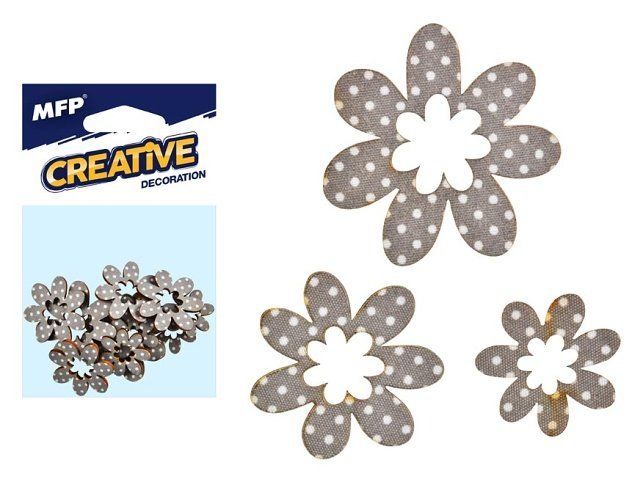 Dřevěná dekorace - květiny s puntíky - Plánujete si udělat pohodové jarní odpoledne a vyzdobit si dům nebo zahradu? Tyto dřevěné dekorace jsou tím vhodným kreativním doplňkem, které ozdobí každý kout Vaší místnosti! Vyrobeno z překližky. Dekoraci lze použít k aranžování věnců a různých doplňků do interiéru. Sada obsahuje: - 12ks květinek s puntíky ve 3 rozměrech: 5, 4, 3cm. Uvedená cena je za 1 balení. Baleno v sáčku se závěsem.