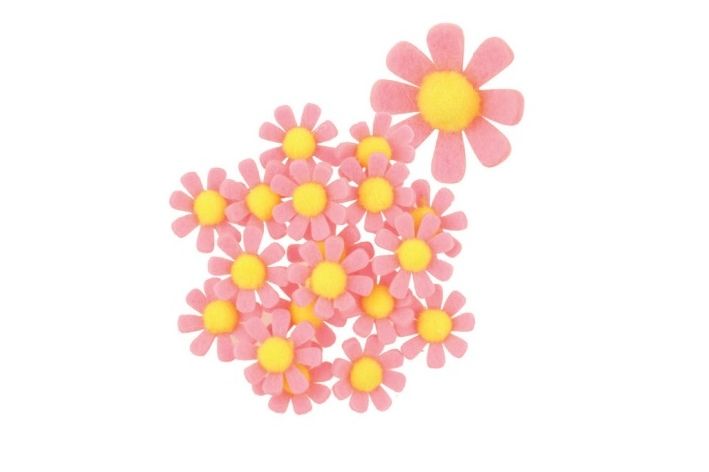 Dekorace květy z filcu s lepíkem 3,5cm 18 ks v balení - Růžová