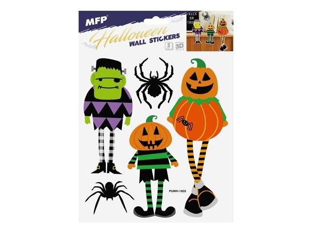 Dekorace na zeď Halloween. Vhodná na stěny, okna, zrcadla, kachličky a jiné hladké plochy! NÁVOD: Opatrně sejměte samolepku z podkladového papíru a umístěte ji na zvolenou suchou a čistou plochu. Vyhlaďte od středu ke krajům. Uvedená cena je za 1 arch.