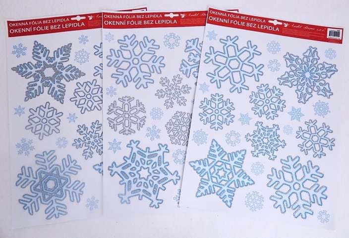 Dekorace okenní 348 ledové vločky se stříbrnými glitry 42x30cm