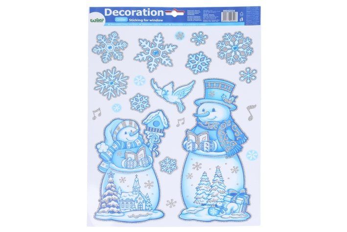 Dekorace okenní o velikosti 41x29 cm Sněhuláci VÁNOCE.