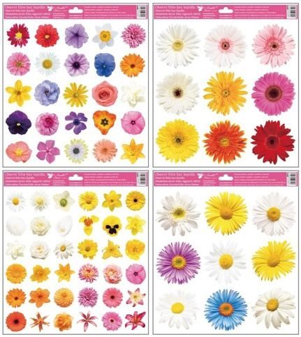 Dekorace okenní folie 30x33,5cm, barevné květiny / 6876