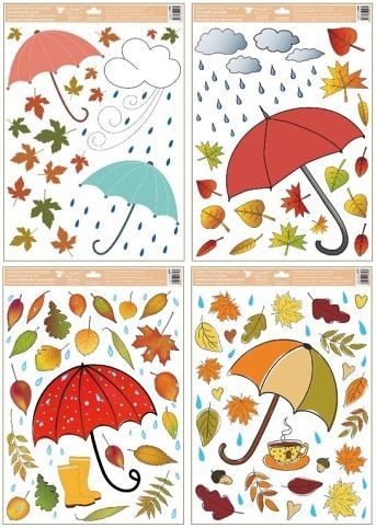 Dekorace okenní fólie podzimní deštníky 35 x 50 cm (6890)