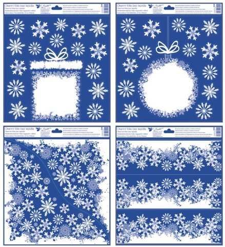 Dekorace okenní fólie s glitry,Vánoční motivy z vloček 30 x 33,5 cm / 238