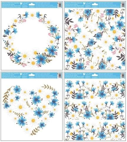 Dekorace okenní s glitry kytky 33x30 cm /987/