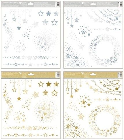 Dekorace okenní lesk 30 x 33,5 cm, zlaté/stříbrné motivy z hvězdiček /247