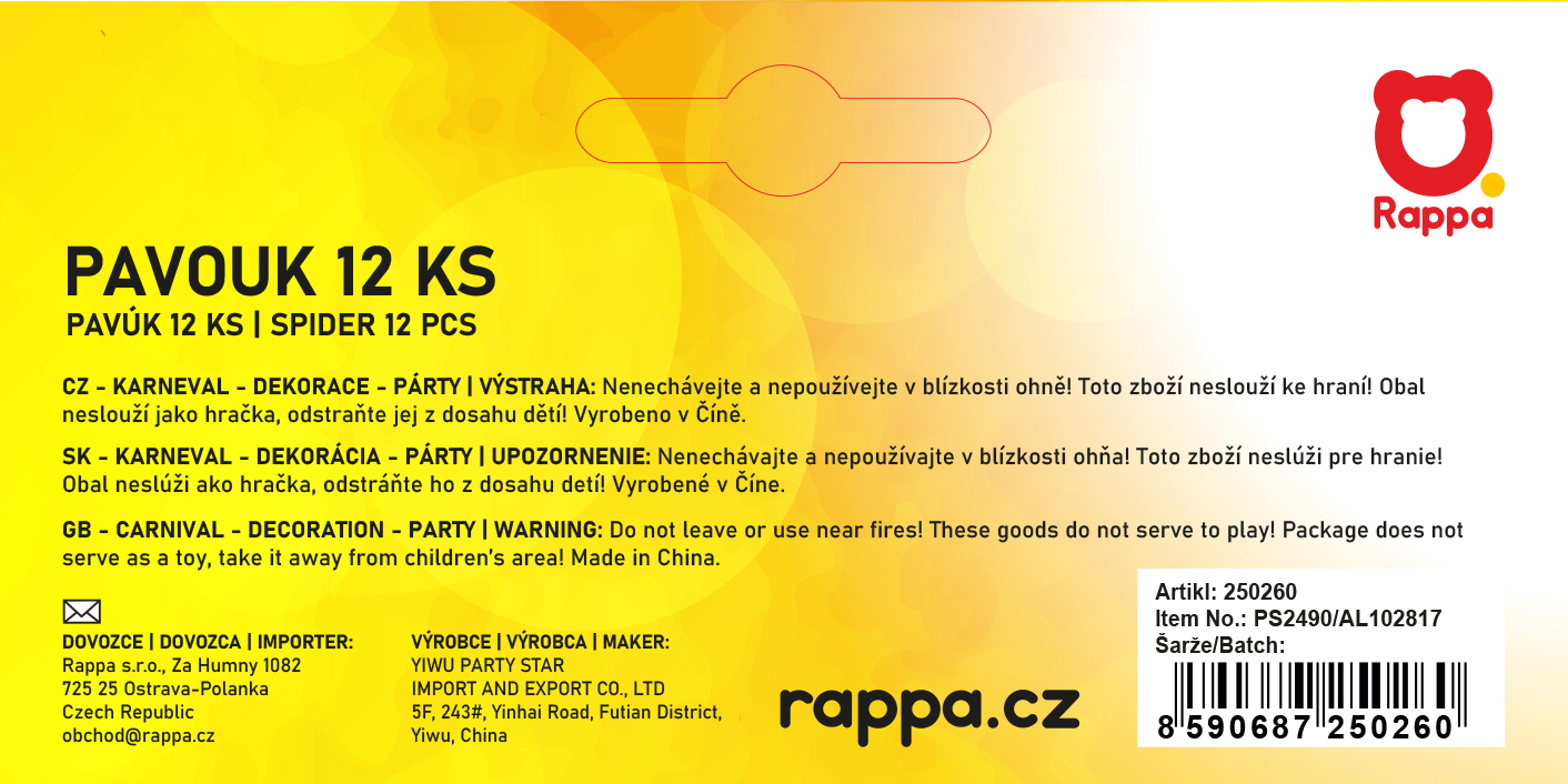 Vytvořte tu pravou strašidelnou atmosféru s našimi gumovými pavouky, kteří jsou ideální na výzdobu interiéru i exteriéru během Halloweenu! Velikost pavouka je cca 6 cm a v jednom balení jich najdeš 12 ks.