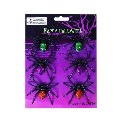 Malí gumoví pavouci, kteří jsou senzační dekorací na Halloweenskou párty! Balení obsahuje 6 ks barevných třpytivých pavoučků.