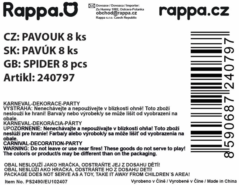 Malí plastoví, třpytiví pavouci v černé barvě, jsou senzační dekorací na Halloweenskou párty! Balení obsahuje 8 ks pavouků ve velikosti 6 cm.