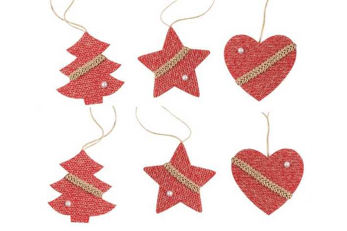 Dekorace pletené červené k pověšení - 6ks v balení.