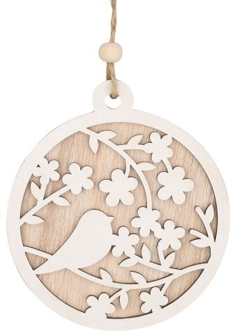 Dekorace s ptáčkem dřevěná k zavěšení 12 cm