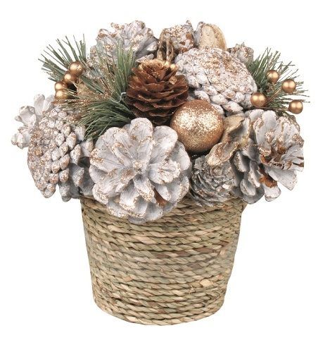 Dekorace se šiškami a jehličím Hotová dekorace se šiškami a jehličím krásně ozdobí třeba sváteční tabuli! Můžete zkombinovat s věncem položka č. 33009 a vytvořit si tak příjemnou vánoční atmosféru.