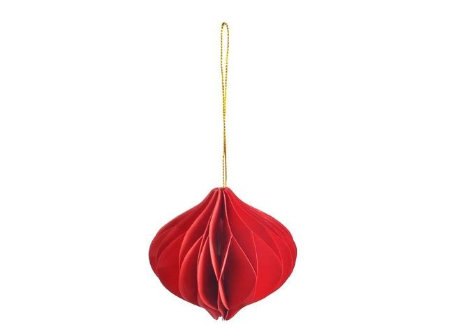 Dekorace skládací baňka 8cm červená pap. Obsahuje zlatou šňůrku na zavěšení a díky svému netradičnímu provedení krásně ozdobí váš vánoční stromek nebo sváteční stůl. Díky tomu že je baňka papírová a skládací, tak ji můžete snadno po svátcích složit a nezabere téměř žádné místo. Uvedená cena je za 1ks.