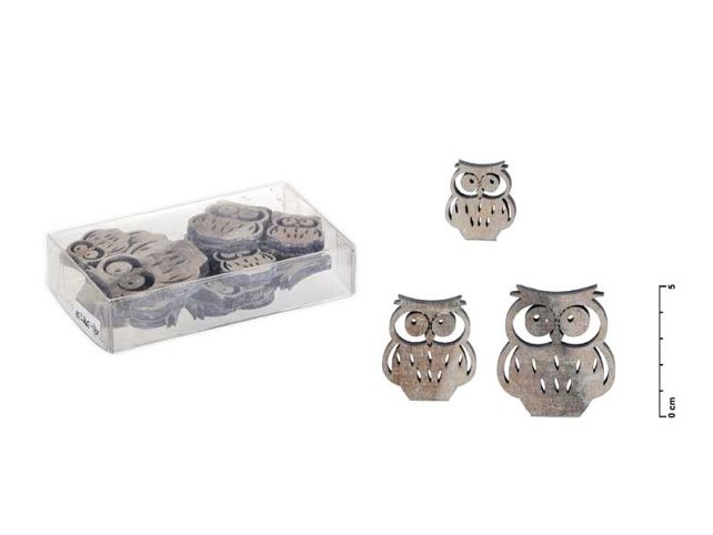 Vánoční dekorace, dřevěná ozdoba ve tvaru sovy. Ozdoby jsou vyřezávané, v mixu 3 velikostí. Sada obsahuje 14 kusů vánočních ozdob. Baleno v plastové krabičce.