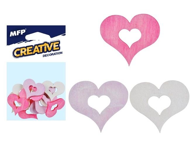 Valentýnská dřevěná dekorace - srdíčka - Udělejte radost své drahé polovičce a vyrobte ji zamilované přání jako důkaz lásky - vhodné pro výrobu svatebních dekorací, přáníček, vzkazů a doplňků do domácnosti Sada obsahuje: - 12ks vyřezávaných srdíček (červená, růžová, šedá) Uvedená cena je za 1 balení. Baleno v sáčku se závěsem.