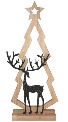 Dřevěná dekorace strom s kovovým jelenem Vytvořte si tu pravou vánoční atmosféru se stylovou dekorací. Dekorace je vhodná i jako dárek.