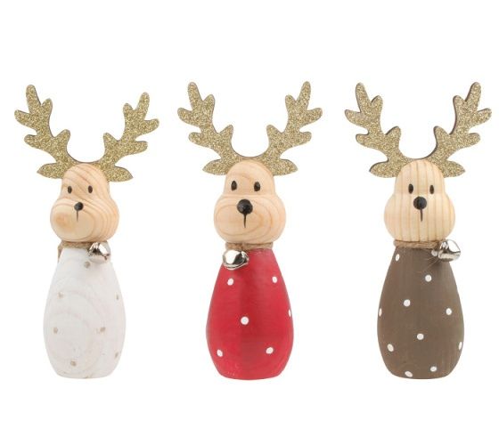 Dekorace vánoční - dřevěný sob s rolničkou 13,5cm mix