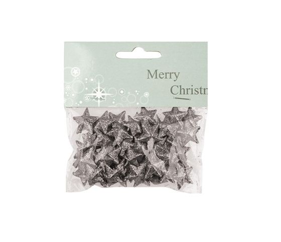 Dekorace vánoční - Hvězdičky s glitry 50ks stříbrné, 2cm, 1977