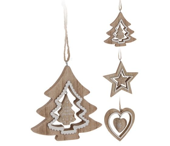 Dekorace vánoční k zavěšení dřevěná - 11cm mix