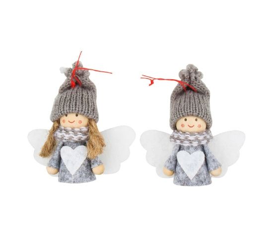 Dekorace vánoční k zavěšení filcová - anděl šedý 7cm mix