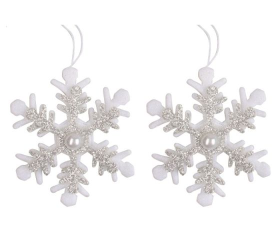 Dekorační glitrová vločka na zavěšení- vhodná ke zdobení věnců, vazeb nebo jako ozdoba na vánoční stromeček- 4ks v sáčku- rozměr: 6cm- barva: bílostříbrná