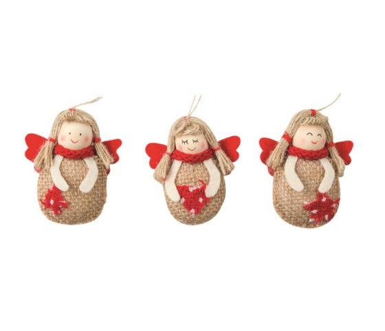 Dekorace vánoční k zavěšení jutová - anděl 7cm mix