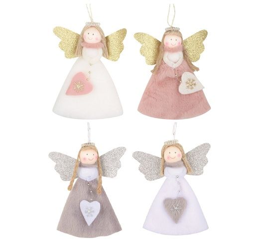 Dekorace vánoční k zavěšení plyšová - anděl se srdcem 14cm mix