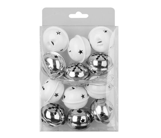Dekorace vánoční - Rolničky stříbrné a bílé 4 cm, 12 ks, 1918