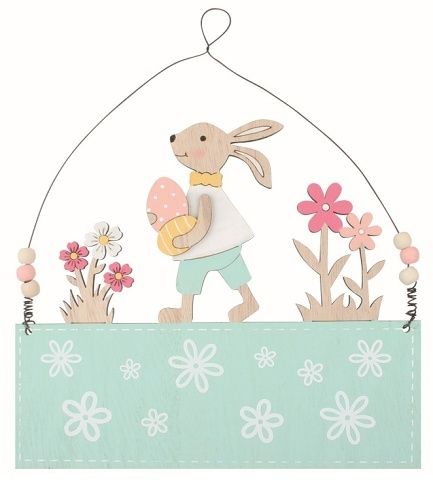 Dekorace Zajíc v tyrkysové 22 x 19 x 1 cm na zavěšení
