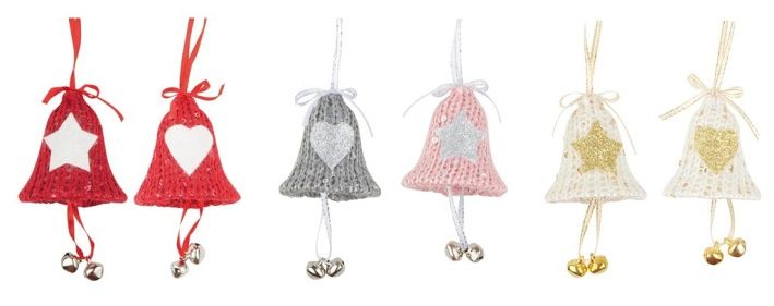 Dekorace Zvonek pletený s flitry a rolničkou 9 cm k zavěšení / 18057