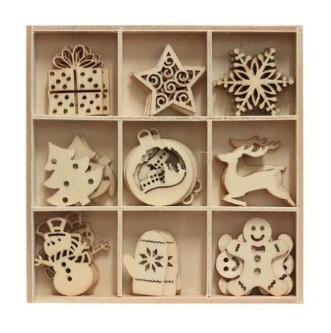 Dekorační dřevěné výřezy vánoční motivy 45 ks