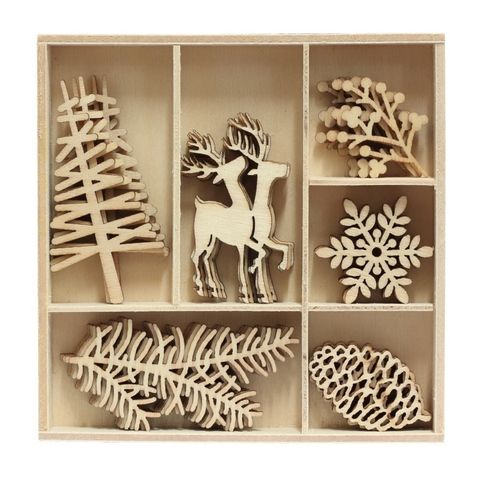 Dekorační dřevěné výřezy - zimní příroda, 30 ks