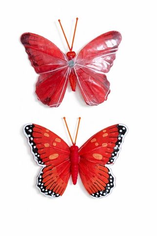 Dekorační motýlek s magnetkem – 12 cm červený 10 ks