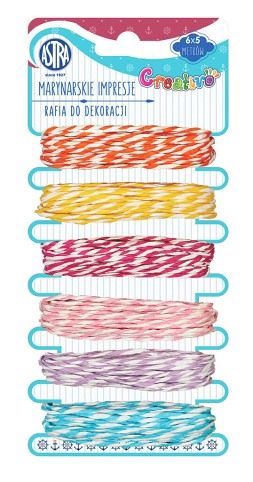 Dekorační raffia 6 barev po 5 metrech ve světlých, jarních barvách - pruhovaná. Ideální na scrapbooking, k dekorování vánočních ozdob a velikonočních vajíček z polystyrenu. Dá se použít i k tvoření přáníček, narozeninových pozvánek a záložek do knih nebo i k balení dárků.